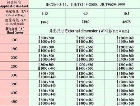 本公司生產(chǎn)的高壓隔相共箱封閉母線,電流等級(jí)達(dá)4500A,電壓等級(jí)達(dá)35kV;每相由一至多根電纜并聯(lián),可根據(jù)電流大小選擇;布置緊湊,中途一般無(wú)接頭,故障及人身觸電的危險(xiǎn);外殼多點(diǎn)接地,采用高強(qiáng)度鋁或鋁合金板制成。        本公司生產(chǎn)的高壓隔相共箱封閉母線技術(shù)參數(shù)如下: